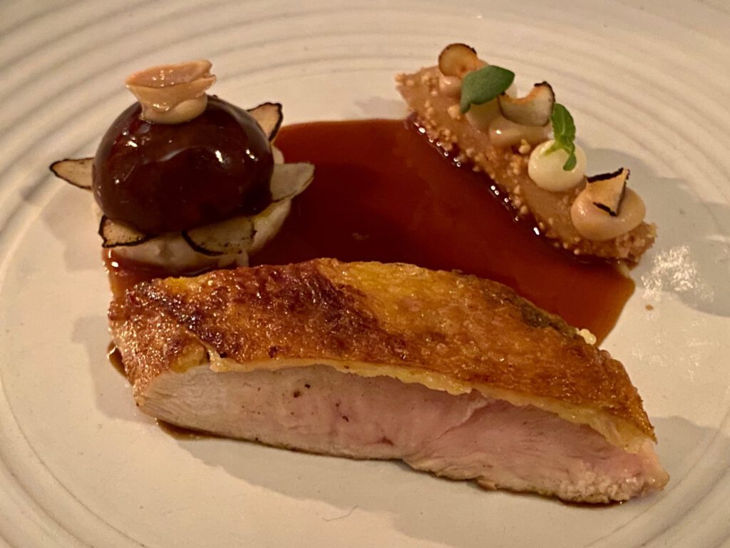Schon die marinierte Gelbschwanzmakrele mit Austernemulsion, Rettich und Apfel hat mich total geflasht. Die Kombi aus Zander, Fenchel, Pastinaken und Kamille absolut ungewöhnlich.