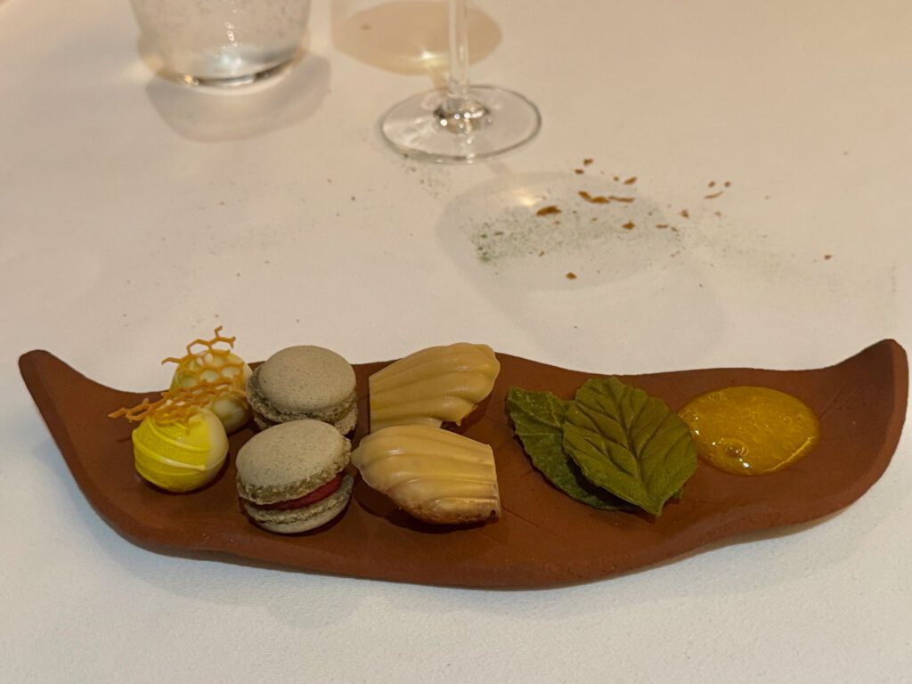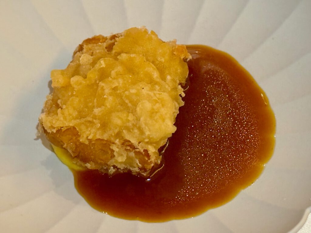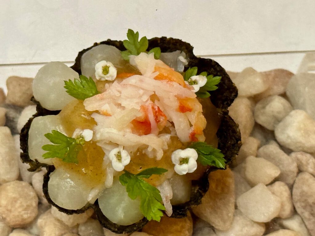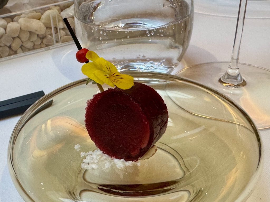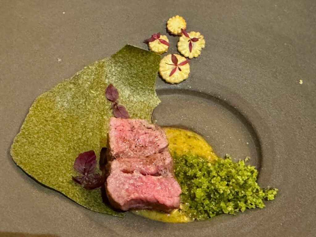 Absolut großartiges Menü – getragen von extrem hoher Produkt Qualität., aber auch immer wieder ausgefallenen Aromen-Kombinationen. Sashimi und Sushi Qualität herausragend. Die vielen kleinen Vorspeisen waren ein Feuerwerk an Aromen-Kombis – bewusst von mir sehr langsam eins nach dem anderen genossen. Die Jakobsmuschel im Teigmantel hatte ich so noch nie. Top. Zum Rind eine mega Estragon Jus. Da hätte ich mich reinsetzen können. Und einen Pralinenbaum hatte ich auch noch nicht ![]()