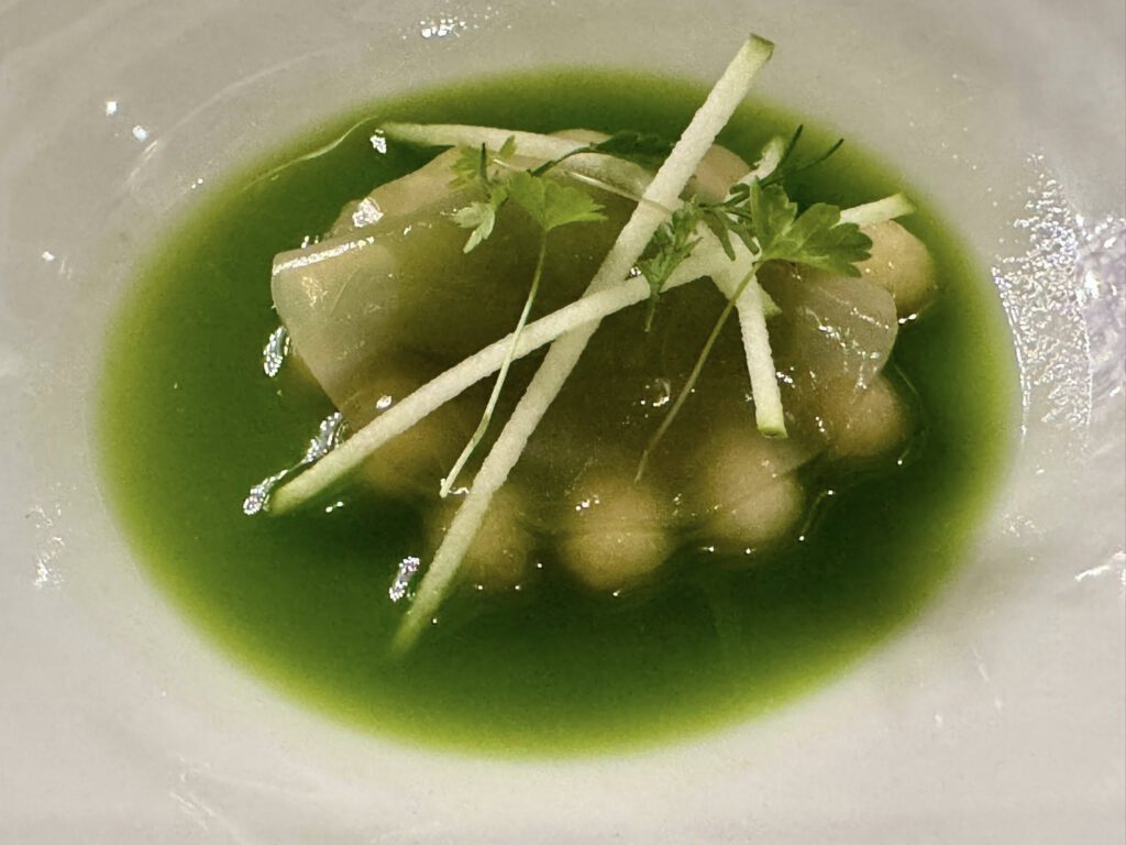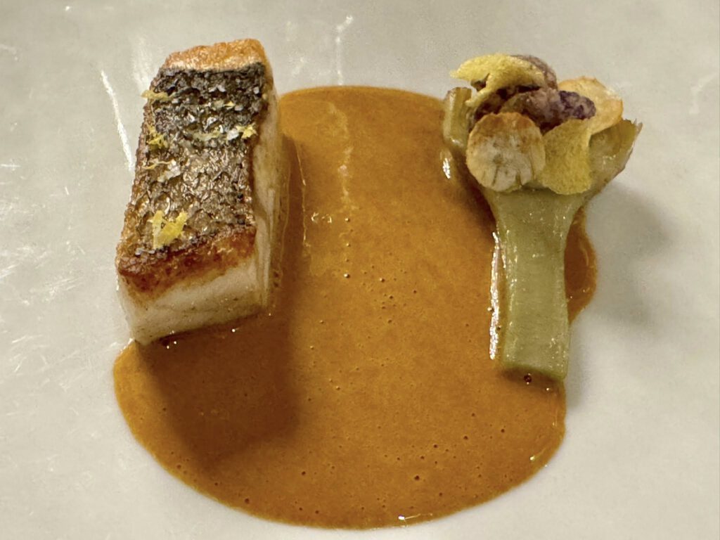 Wolfsbarsch – Artischocke / Zitrus / Krustentier Sud