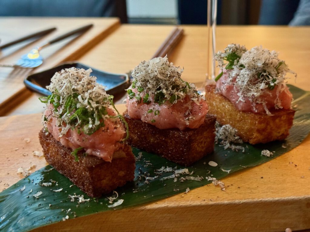 Es ging mal wieder ins Restaurant ITO in Köln. Wir ließen uns nur zu gern auf das Omakase Menü “Kengo’s Menüreise” (ohne Fleischgang) ein. Und das war wieder richtig gut. Mit Top Qualitäten von Thunfisch und Lachs bis Zander. Zubereitet in aller Seelenruhe von Kengo himself. Anna bekam vom Sushi nicht genug und Kengo musste quasi Überstunden machen für eine Anna Extra Bestellung ![]()
