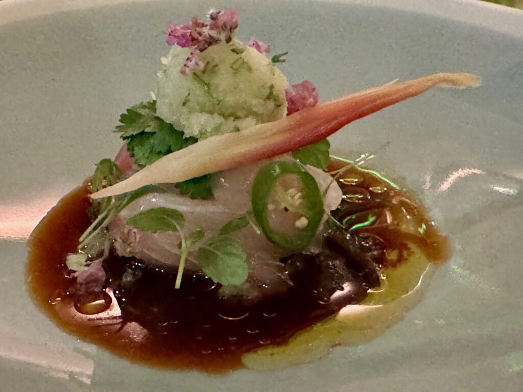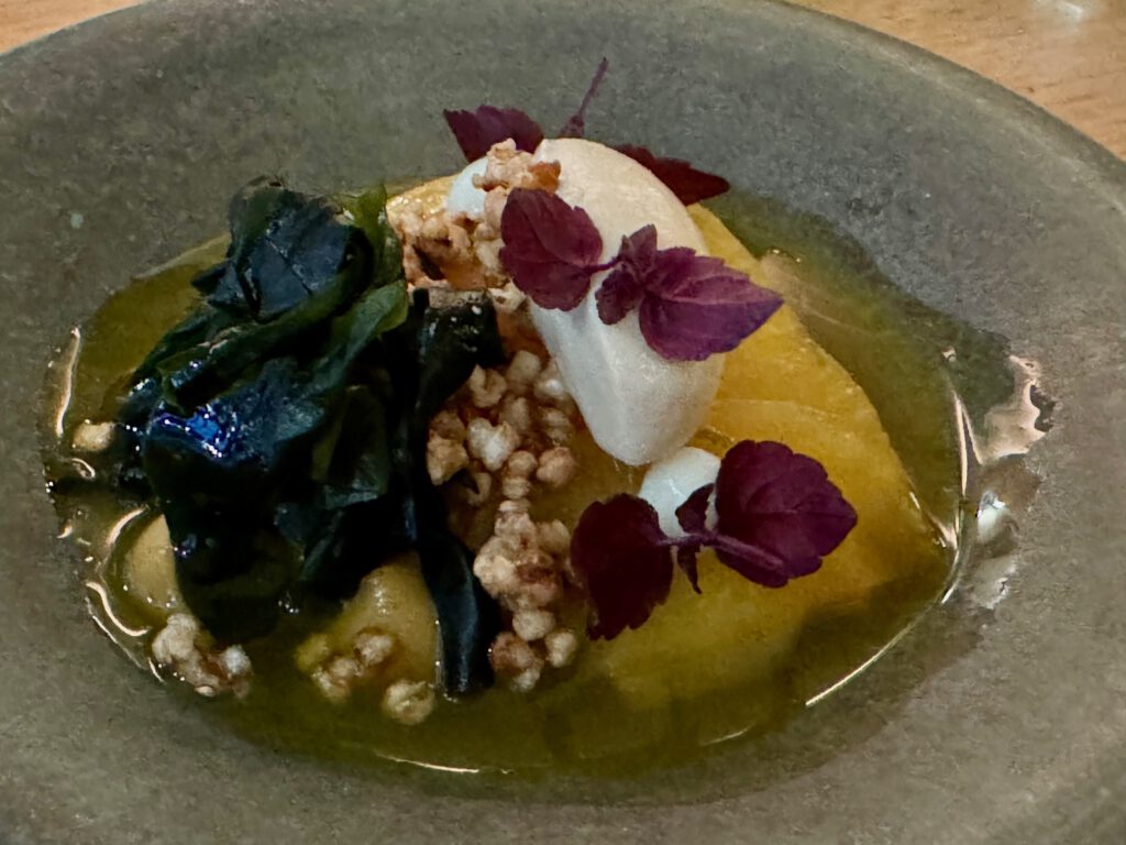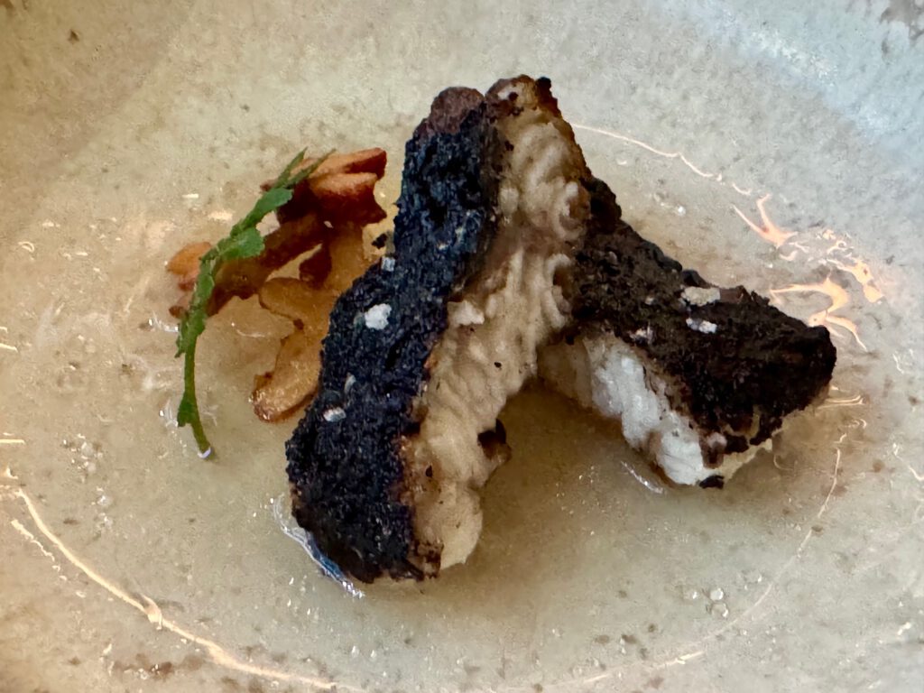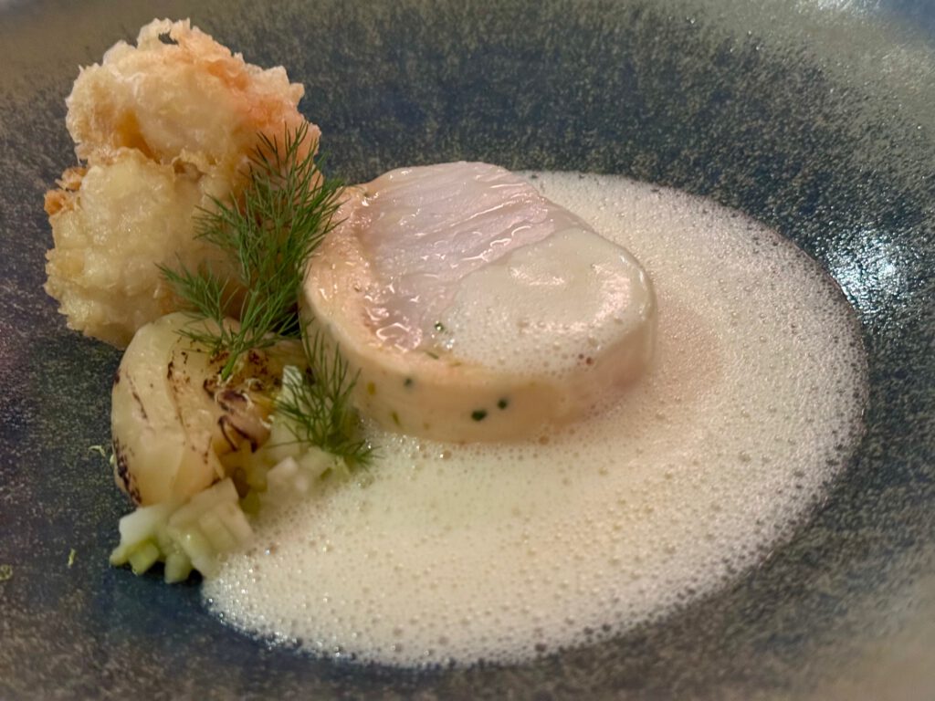 Fischgang: Kabeljau | Shirako | fermentierter Fenchel | Yuzukosho