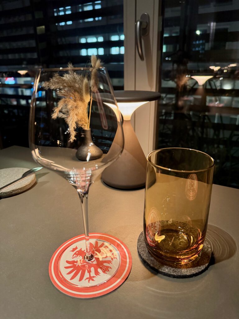 Für mich natürlich ein weiteres Highlight: Sommelier Sebastian Höpfner. Ich kenne und schätze ihn seit vielen Jahren – daher verzeihe ich als BVB Fan ihm als SGE Fan die spezielle Bierdeckel-Begrüßung mit dem Adler.