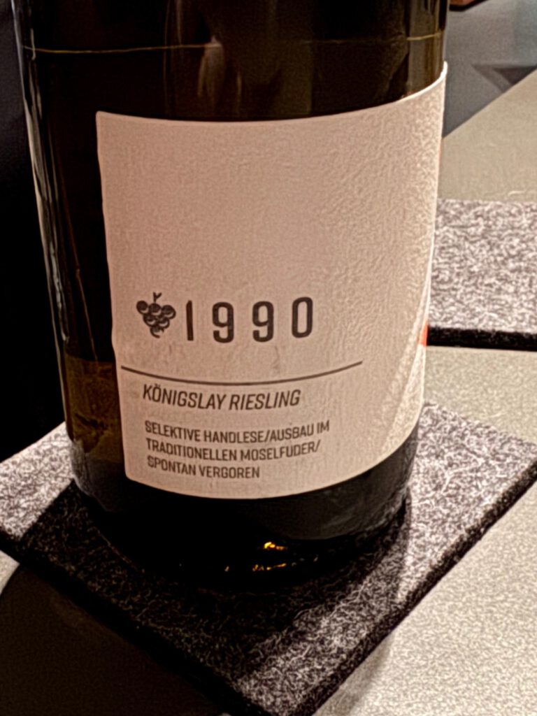 dazu gab es 1990er Königslay Riesling Spätlese vom Weingut Wagner von Wohlgemutheim an der Mosel