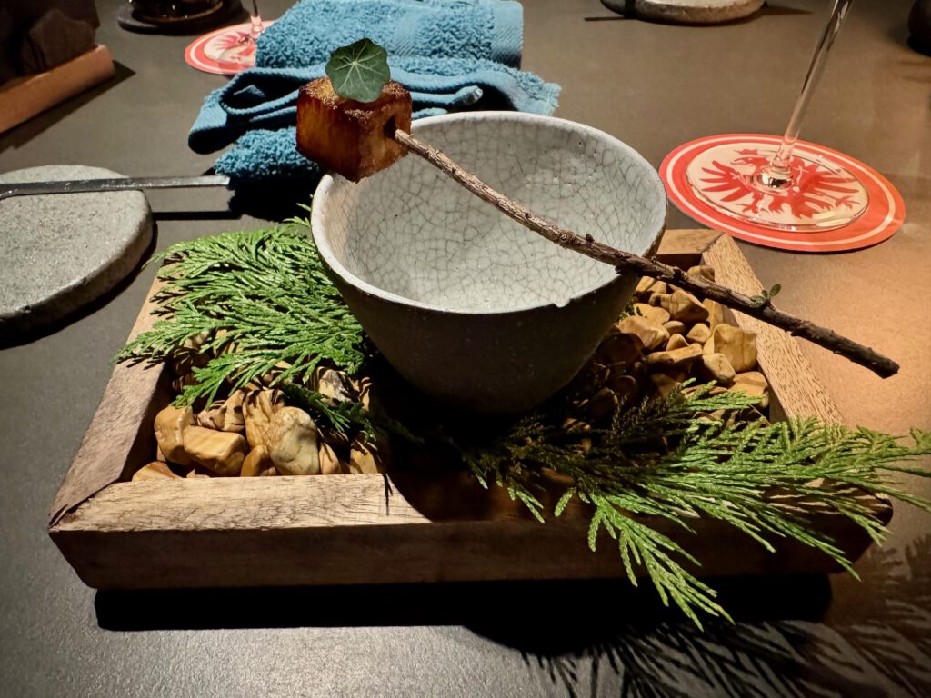 Was Marco Müller und sein Team uns als „Inspirationsmenü“ präsentierten, war schlicht sagenhaft: Gerichte aus im Grunde sehr wenigen Komponenten, fast schon spartanisch wirkend – und genau dadurch so präzise. Diese kleinen Details, die den Unterschied machen, und eine Tiefe, die fast magisch wirkte.