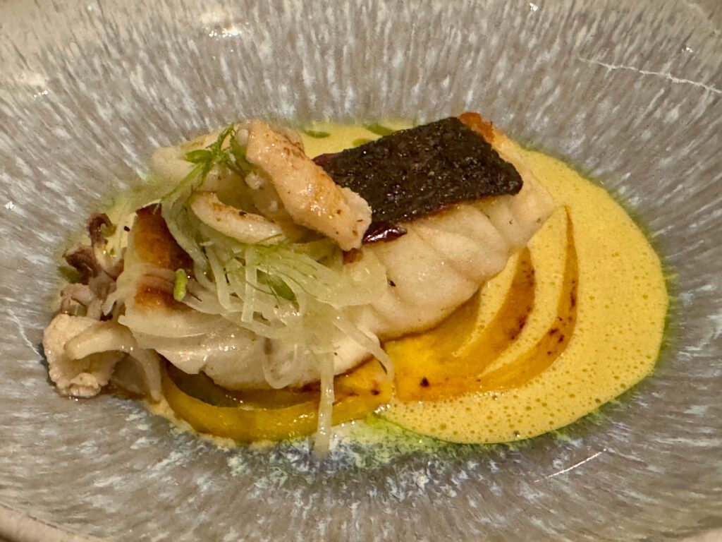 Wolfsbarsch mit Calamaretti, Fenchel und Safran-Fenchel-Sud