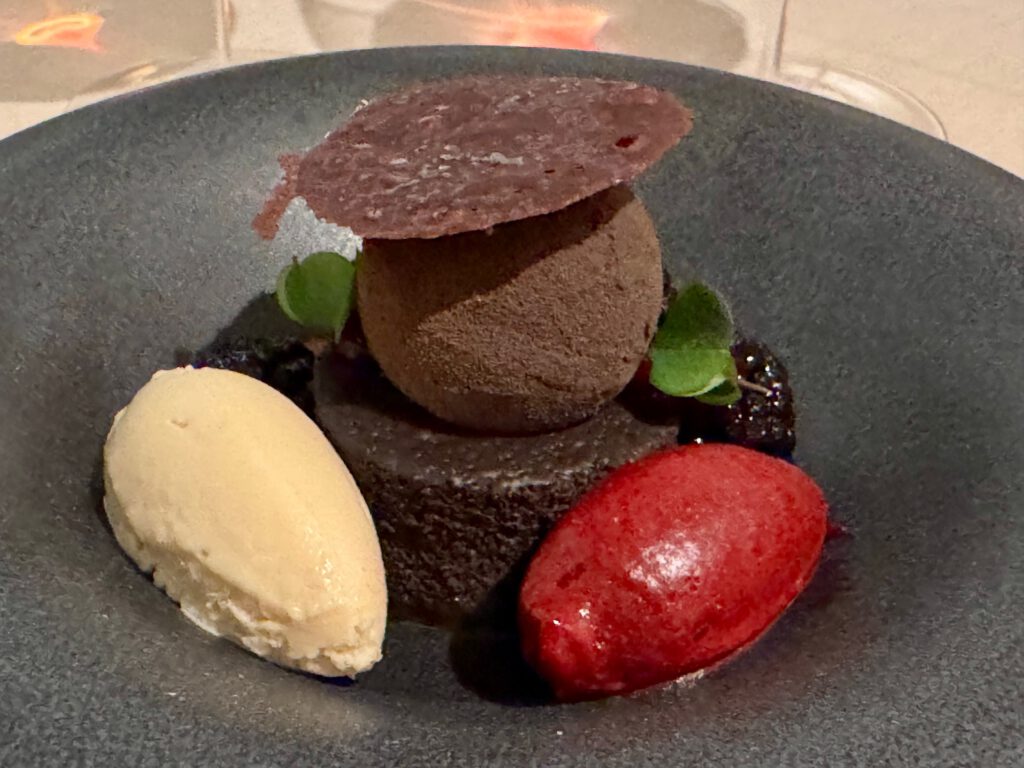 Brombeere mit Guanaya Schokolade und karamellisierter Landmilch