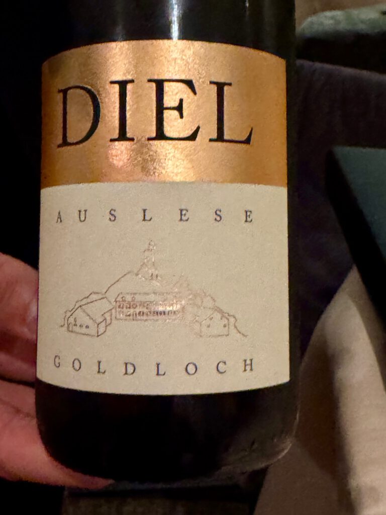 dazu gab es 2013er Riesling Auslese Dorsheim Goldloch vom Schlossgut Diel. Großartig gereift mit immer noch packender Säure.