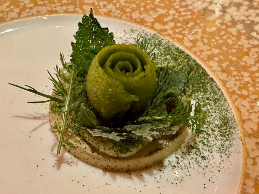 Am Donnerstag Abend ging es dann – natürlich wieder mit Anna – ins Restaurant Tantris. 1971 eröffnet und damals ein Meilenstein in der Geschichte der deutschen Spitzengastronomie. Wo wäre deutsche Kulinarik wohl heute ohne das Tantris? Der Name „Tantris“ spielt auf ein fernöstlich-mystisches Lebensgefühl an – passend zum visionären Gesamtkonzept, das weit über gutes Essen hinausgeht.