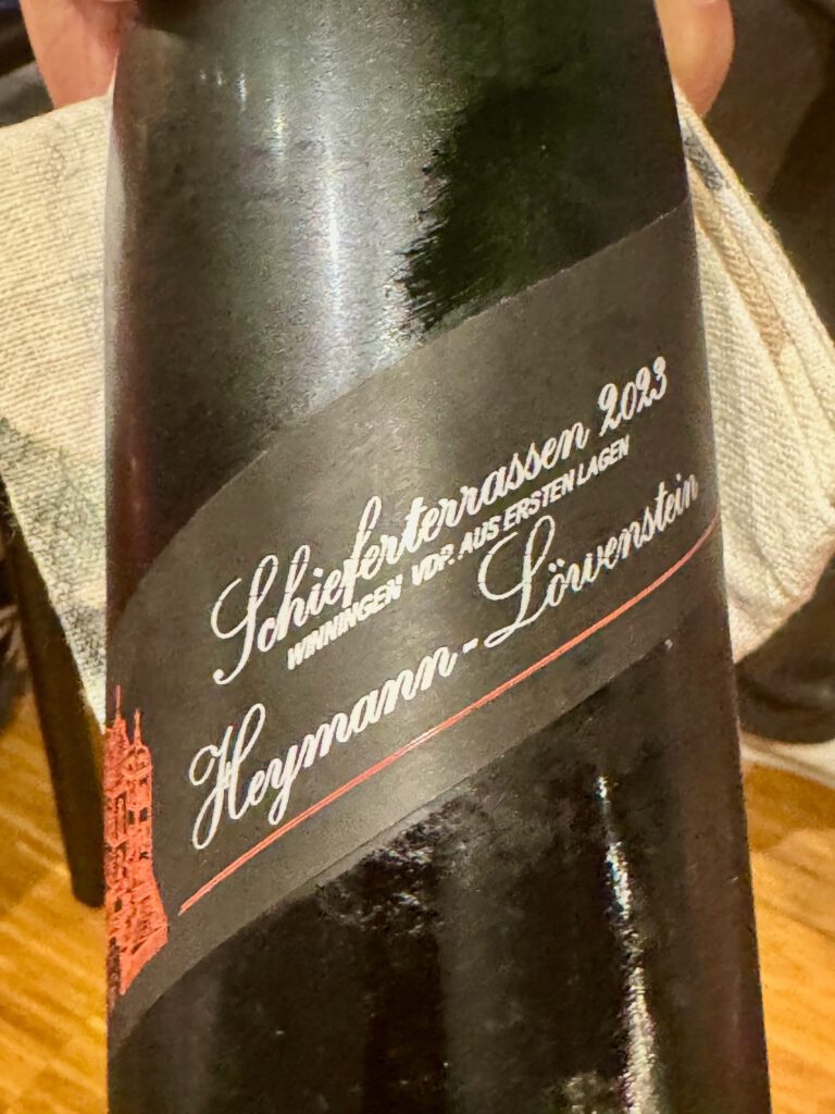 Dazu gab es Riesling von der Mosel: Heymann-Löwenstein – Schieferterrassen 2023