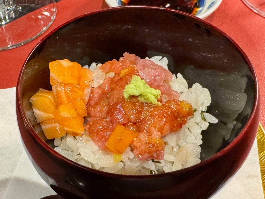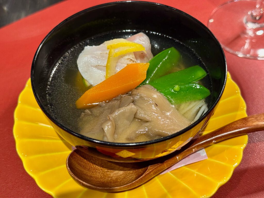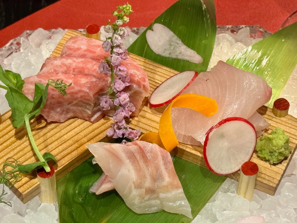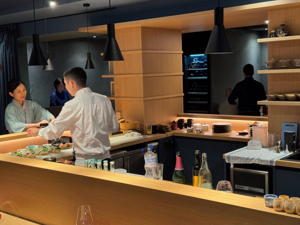 Ich entschied mich für eine Mischung aus Wein- und Sake Begleitung. Die Qualität der Produkte war absolut top – das Menü sehr stimmig. Die Wein-/Sake-Begleitung war sehr gut. Die Atmosphäre im Restaurant sehr edel puristisch. Und der Service was ausnehmend zuvorkommend