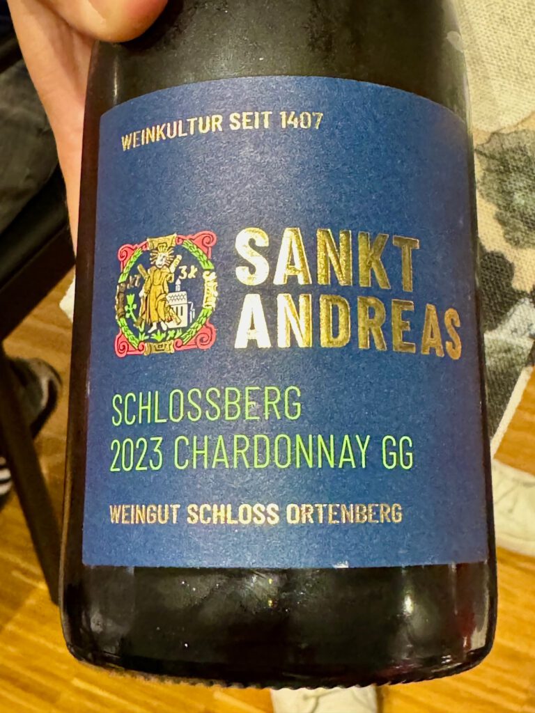 Dazu gab es Chardonnay aus Baden: Weingut Schloss Ortenberg – Schlossberg Chardonnay Großes Gewächs Sankt Andreas 2023