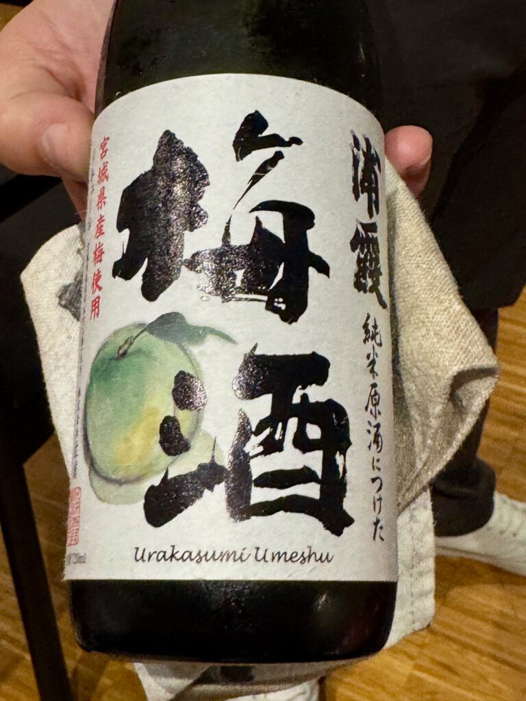 Dazu gab es Likörwein auf Basis von Sake, angesetzt mit japanischen Ume-Pflaumen: Urakasumi Umeshu (Miyagi)