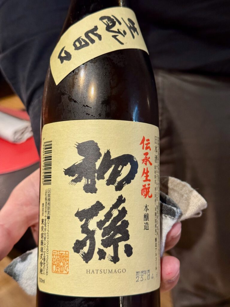 dazu gab es den ersten Sake: Hatsumago – Honjozo (aus Yamagata). Eher leichter Körper